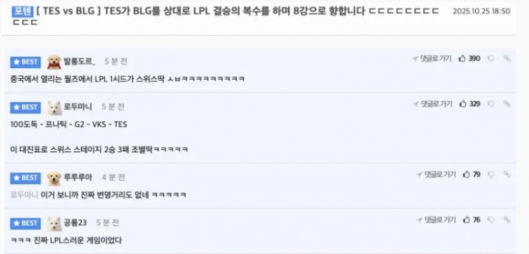 10月25日,2025年英雄联盟全球总决赛瑞士轮落下帷幕,TES以2比1的比分逆转战胜BLG,精彩晋级八强,令韩国网友们在社交媒体上纷纷热议。