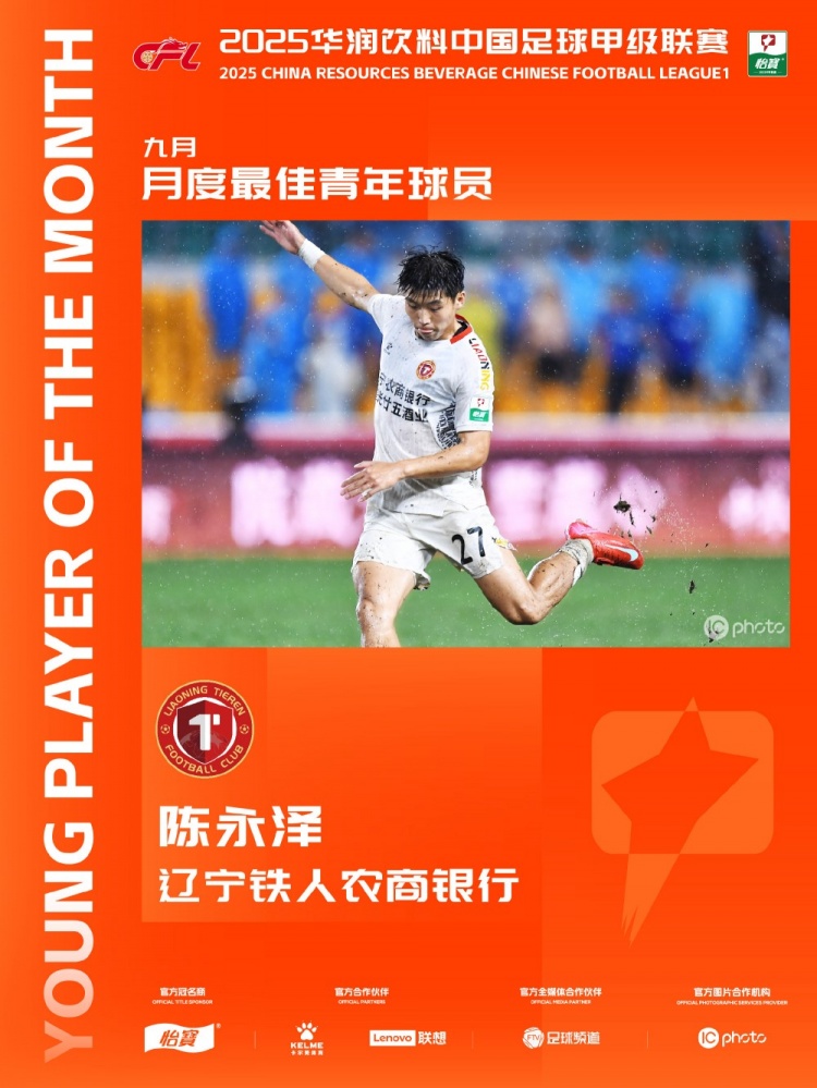 根据中甲联赛的官方消息,辽宁铁员的陈永泽于9月被评选为最佳青年球员。他在9月份的比赛中贡献了1个进球和1次助攻。在这一评选周期内,涵盖了联赛的第13、22、23和24轮,共计4场比赛,因此参选的球员和教练员的数据均以这些轮次的表现为标准。