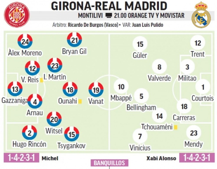 赫罗纳的目标是尽快摆脱降级区,而皇马则力求重新夺回积分榜首位,扳回因巴萨占据而失去的领先。对于赫罗纳而言,球队在本场比赛中将缺少多名主力球员,包括大卫·洛佩斯、范德贝克、布林德、勒马尔及波图等。此外,斯图亚尼因小腿受伤也将缺席,导致球队的首发阵容受挫。