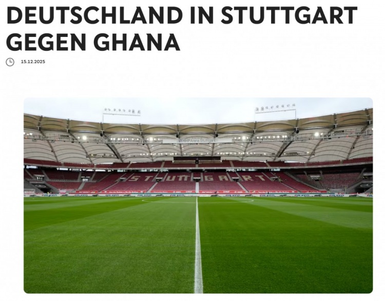 德国足球协会近日正式宣布,德国队将于2026年3月30日晚8点45(欧洲中部时间),在斯图加特迎战加纳队。这场友谊赛原本计划面对的是科特迪瓦,然而在最近的世界杯小组赛抽签中,这两支球队被分在同一组,因而不得不调整对手。