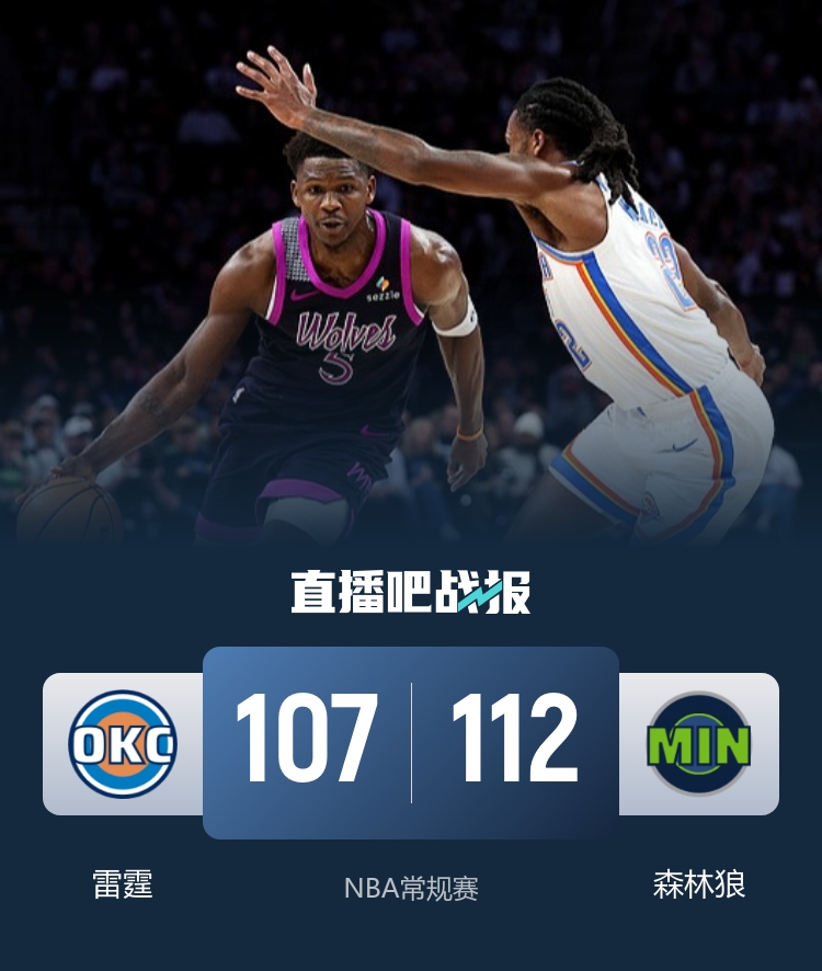12月20日讯 NBA常规赛再次点燃战火,排名第一的雷霆带着“火焰”前往明尼苏达,迎接他们的则是小狼群——森林狼。值得一提的是,爱德华兹在这场比赛中重返赛场,似乎宣告着森林狼的复苏。