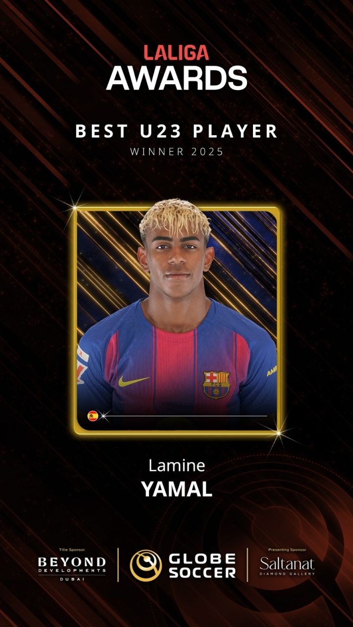 在满是星光的迪拜,今天举行了2025环足奖颁奖典礼,而亚马尔毫无悬念地捧回了西甲最佳U23球员的奖杯。哇哦,简直就是个宝藏男孩,让我们一起来看看他的成就如何让人目瞪口呆。