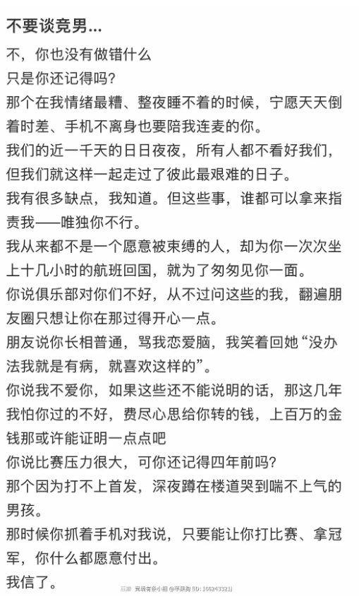 1月21日的消息引起了不少讨论,一位网友在豆瓣上提到了一则引人关注的故事。某小红书用户透露,她与一名电竞选手结束了一段历时三年的感情,而在这段关系中,她向这位选手转账金额竟然超过了百万。在她的叙述中,有些细节颇具趣味,令人忍不住想要深入探讨。
