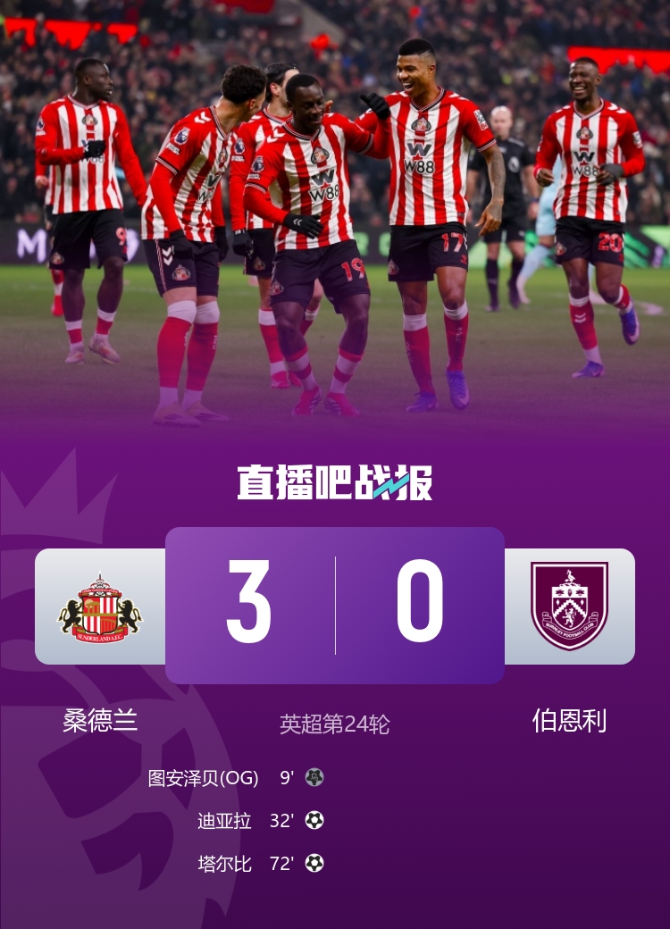 2月3日讯 北京时间凌晨4:00,英超联赛第24轮的较量在桑德兰和伯恩利之间展开。比赛中,桑德兰表现出色,上半场迪亚拉独中两元,下半场塔尔比也有精彩表现,最终桑德兰以3-0的比分战胜伯恩利,升至联赛第8位,而伯恩利则遭遇了持续15轮未能获胜的困境。
