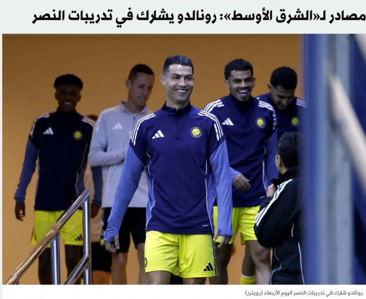 根据《中东报》等沙特媒体的报道,C罗在2月4日回到了利雅得胜利的训练场,为周末与吉达联合的对决做准备。今天,他的回归受到了广泛关注,因为他不仅重新加入了球队的集体训练,还与多名主力球员一起磨合,显得状态不错。