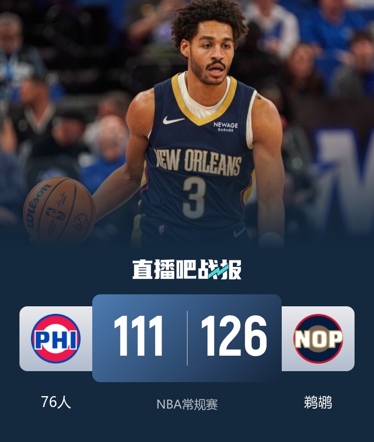 下半场易边再战,鹈鹕的贝表现出色,凭借个人的进攻能力帮助球队追平比分。接下来,双方陷入胶着,普尔和马特科维奇的联手发力,让鹈鹕再次拉开了比分,形成了13-2的攻击波,并顺利实现反超。到了末节,鹈鹕越战越勇,将领先优势扩大到两位数,普尔更是火力全开,分差一度达到20分以上,76人难以追赶。最终,鹈鹕以126-111战胜76人,送给对手连续第四场失利。