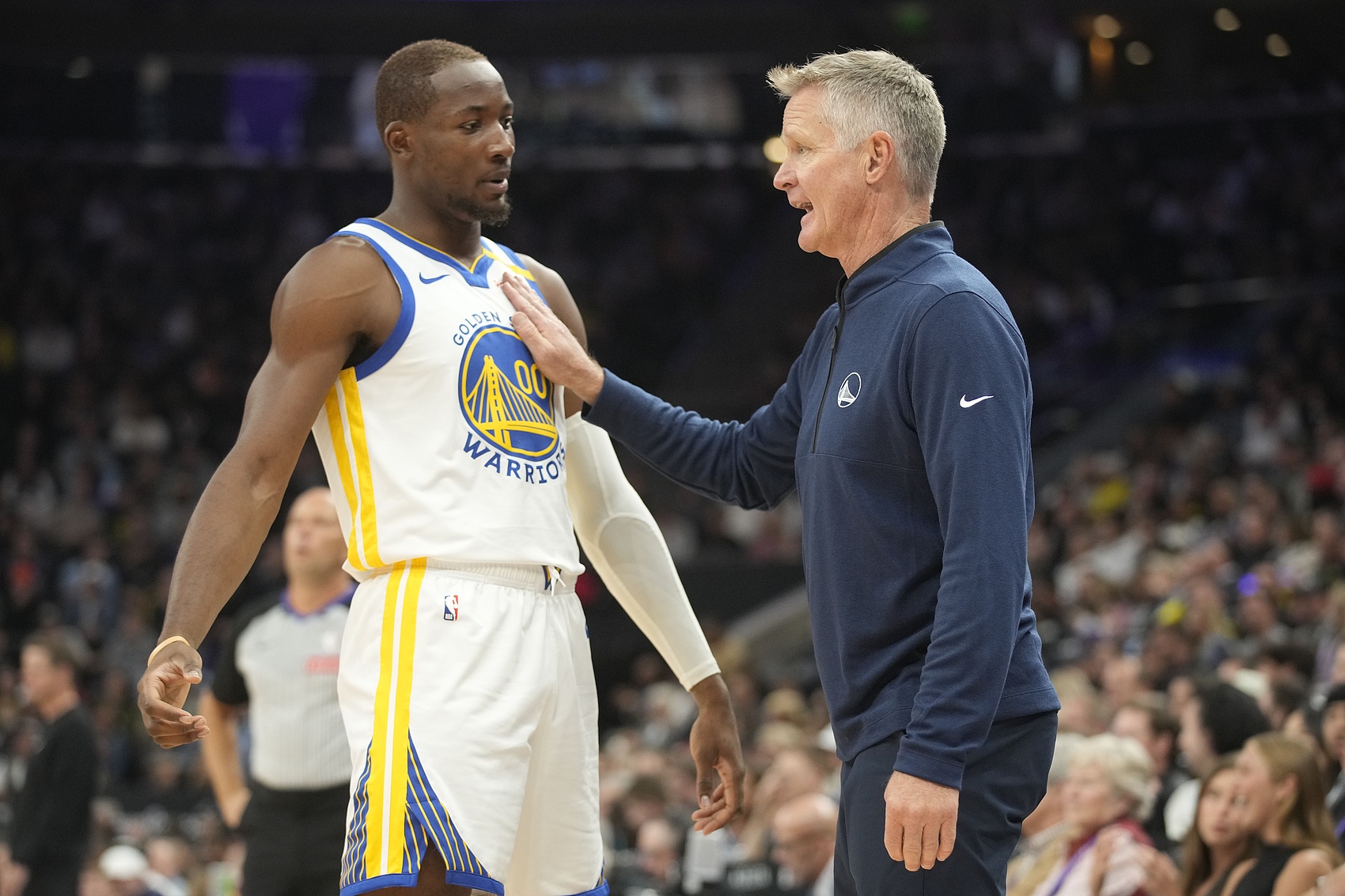 3月22日讯 在这场注定要被铭记的比赛中,勇士以110-126惨遭老鹰击败。赛后,勇士主教练科尔接受了记者的采访,谈到了球队中新星库明加的“发展动态”。