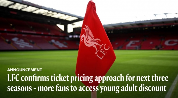 利物浦足球俱乐部今日正式公布了未来三个赛季的门票价格调整计划,主要内容包括成人普通门票和季票的适度上调,而青少年球票和本地普通球票价格将保持不变,均为每张9英镑。