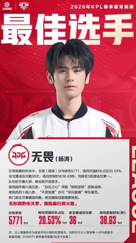 3月27日,KPL官方欢声雷动:恭喜所谓的“无畏”杨涛,刚刚获得2026KPL春季赛常规赛的最佳选手,看来登顶的关键是被动技能——闪光的比赛数据!在这场堪称常规赛事中的“船新体验”,我们的无畏同学可谓是个战场上的小精灵,场均弄伤5771,简直就像个刺客在敌人心口上踱步,完美地指挥着全队节奏。