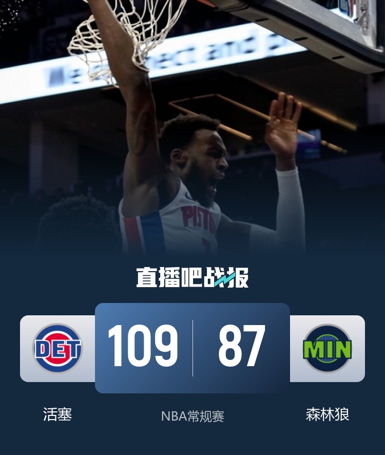 进入下半场,活塞表现出色,再次打出7-0的小高潮,将领先优势扩大至双位数。尽管迪文岑佐通过连续三分球为森林狼止血,但活塞始终控制着10分以上的领先优势。到了末节,活塞替补球员发挥出色,一度将分差扩大至近20分。此后,双方开始调换上场阵容进行练兵,最终活塞以109-87轻松战胜森林狼。