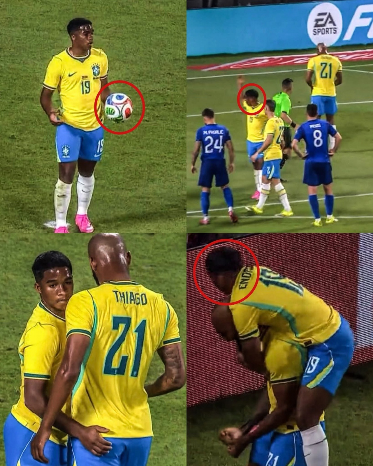 在制造点球的那一刻,恩德里克突入禁区时被对方球员犯规,随后他与伊戈尔·蒂亚戈进行了简单的沟通,双方达成了一致。尽管如此,安切洛蒂并没有支持恩德里克的决定,明确指示他将罚球机会让给蒂亚戈。场边的门将埃德松也积极呼吁,重申主教练的指令,强调由伊戈尔·蒂亚戈来主罚。