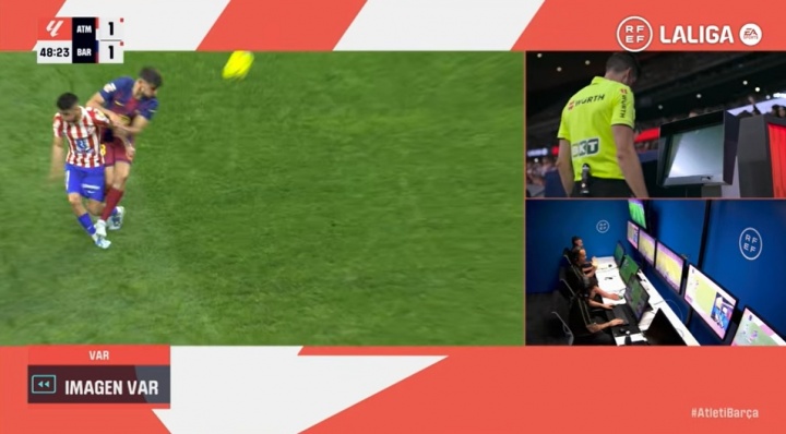 最后,对这两起例子的结论来看,与本赛季裁判技术委员会的评判标准及国际裁判机构的统一判罚原则相结合,我们可以说:在马竞与巴萨的比赛中,球权明显在双方争抢状态,主裁判最初的红牌判罚是正确的,不应由VAR介入。而在瓦伦西亚与塞尔塔的比赛中,主裁判虽然不判罚直接任意球,但对动作性质的判断是正确的,并未进行额外的纪律处罚,处理得当,VAR也没有介入,所有操作都是合规的。
